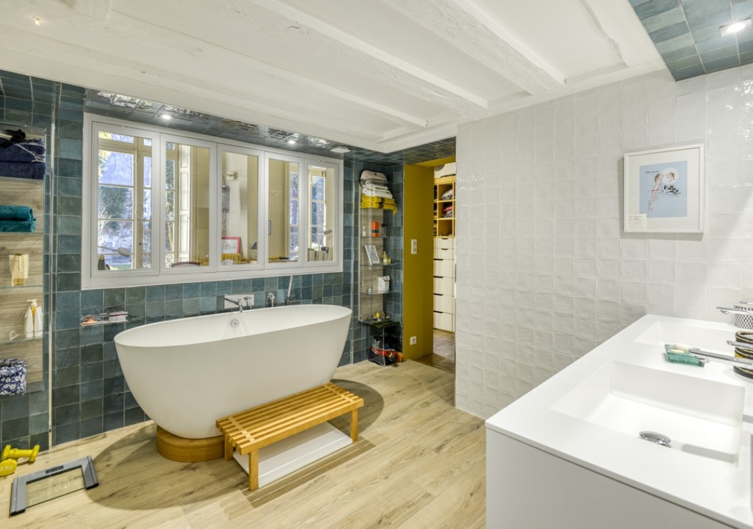 L'espace nuit dispose d'une suite parentale avec chambre de 20 m², dressing et salle de bains, ainsi qu'un WC avec lave-mains et une lingerie. À l'étage en duplex, plusieurs espaces offrent de nombreuses possibilités d'aménagement : chambre double avec point d'eau, bureau de 43 m² avec chambre en mezzanine (possibilité deux chambres) et chambre sur jardin avec mezzanine, douche, lavabo et WC.
