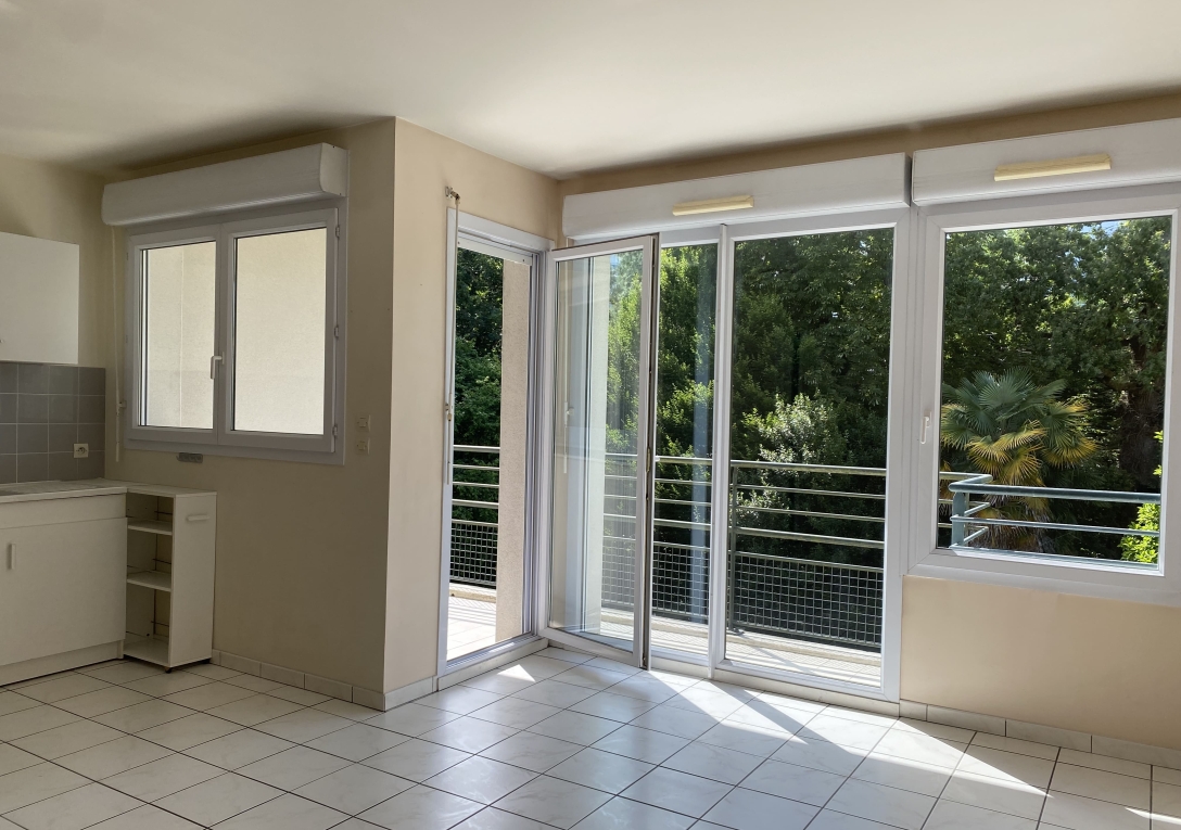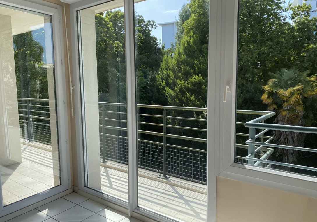 Parc de Procé, charmant T2 de 48 m2 comprenant une entrée avec placard, wc, un séjour sur terrasse ouest de 8 m² vue dégagée sur verdure, cuisine aménagée et équipée neuve (hotte, plaques de cuisson, four, réfrigérateur-congélateur) en retrait, 1 chambre, salle de bains. Cave et garage. chauffage individuel électrique.