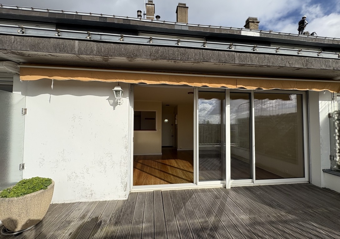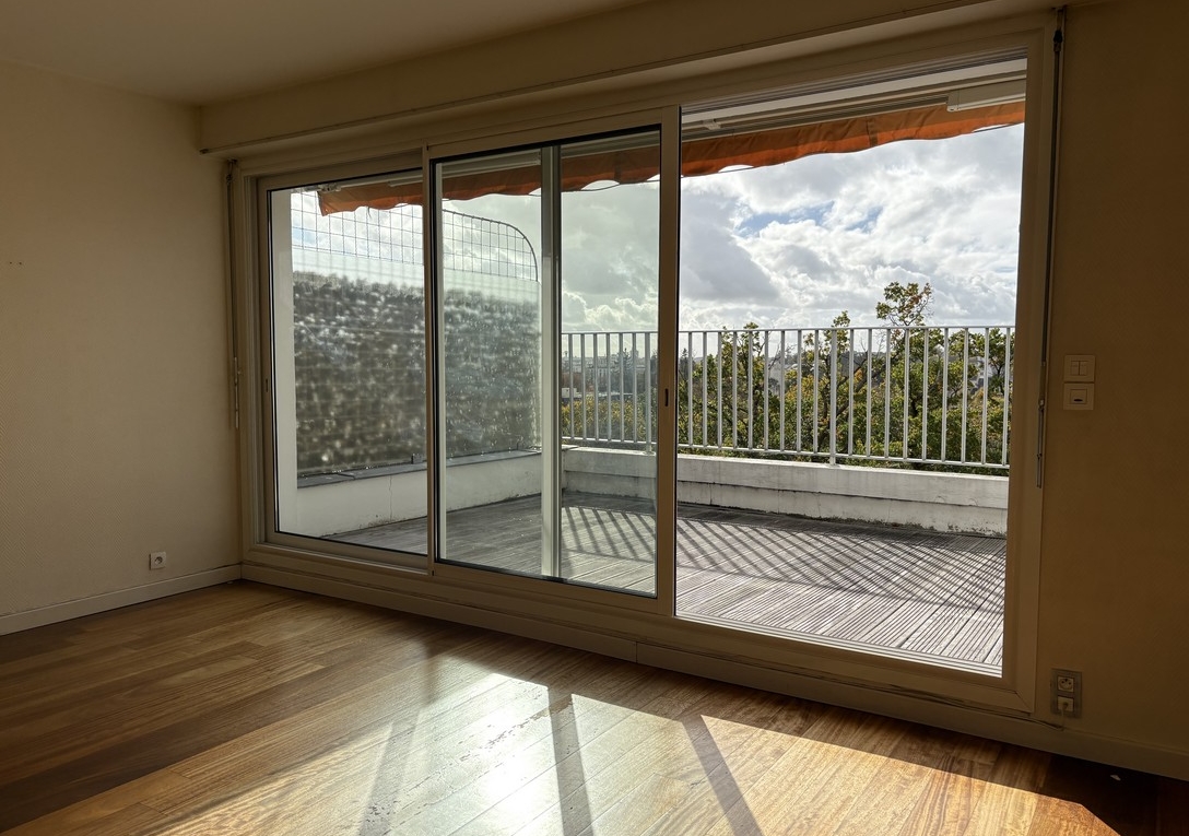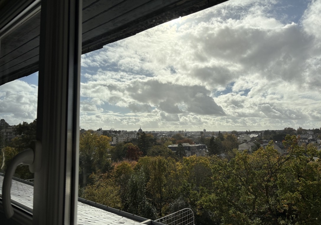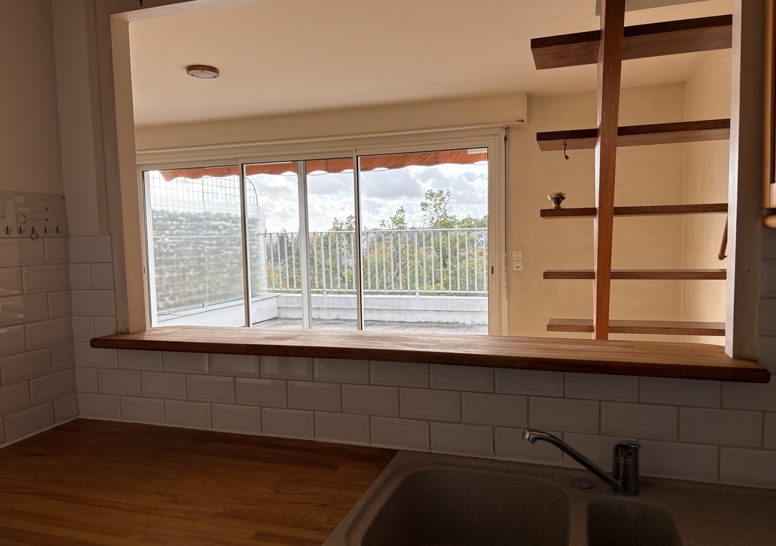 Nantes Camus - Appartement T2 de 49 m² en duplex avec une terrasse et vue dégagée sur la Chézine au dernier étage avec ascenseur d'un immeuble de standing