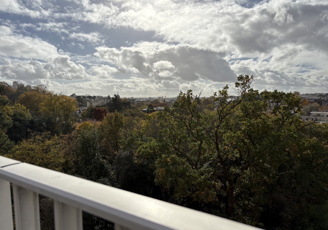 Vue panoramique et sans vis à vis, confortable (parking, ascenseur, terrasse) et proche commerces et transports