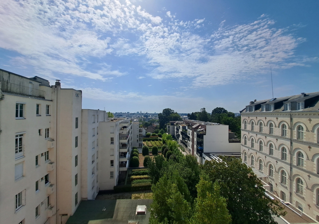 À l'étage, une cuisine d'été prolonge l'espace de vie et donne accès à une exceptionnelle terrasse plein ciel de 50 m², offrant une vue dégagée sur les toits de Nantes. Un véritable espace extérieur rare en centre-ville, idéal pour profiter des beaux jours en toute tranquillité.