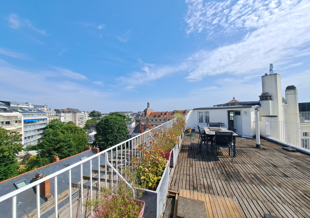NANTES CENTRE-VILLE ? Appartement T2 de 55,44 m² au dernier étage avec ascenseur, terrasse plein ciel de 50 m² et garage