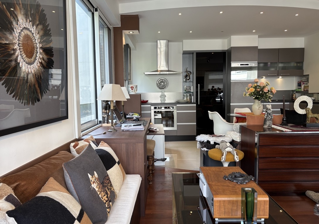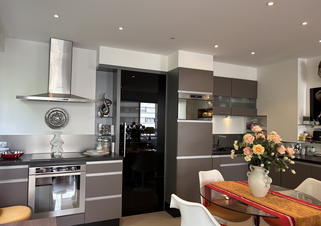 Entrée desservant un séjour de 30.5, m² avec cuisine aménagée équipée donnant sur une terrasse de 8.22 m², une arrière cuisine, une chambre, une salle de douche avec wc.