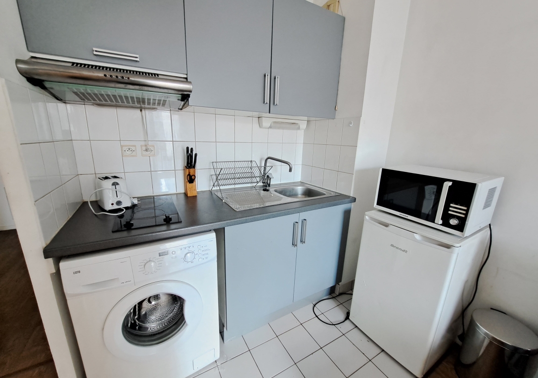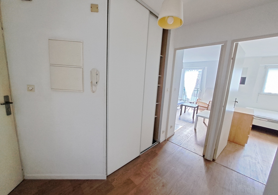 TALENSAC / Appartement T2 meublé de 31m2 comprenant une entrée avec placard, un séjour avec kitchenette équipée, une salle de bain , des WC séparés, et une chambre avec placard.