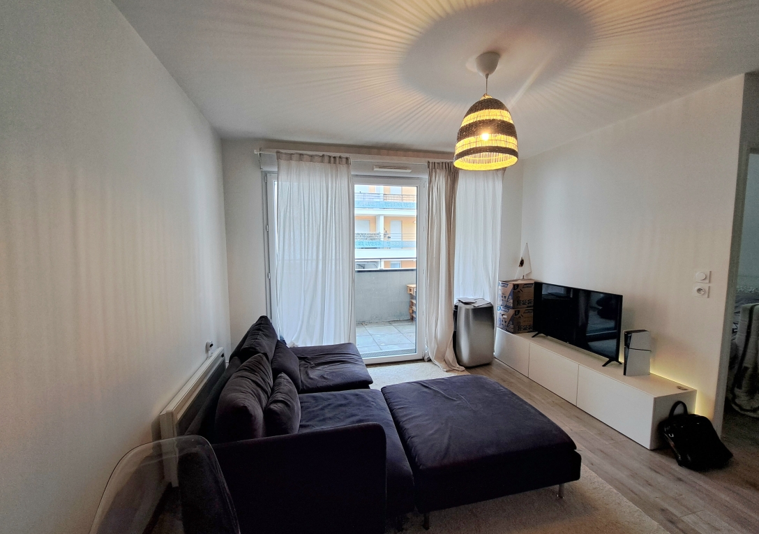 SAINT-SEBASTIEN-SUR-LOIRE / Appartement T2 récent situé en 1er étage composé d'une pièce de vie donnant sur balcon avec cuisine équipée (plaques, hotte et réfrigérateur), une chambre de 11m², salle d'eau avec WC. Un balcon.