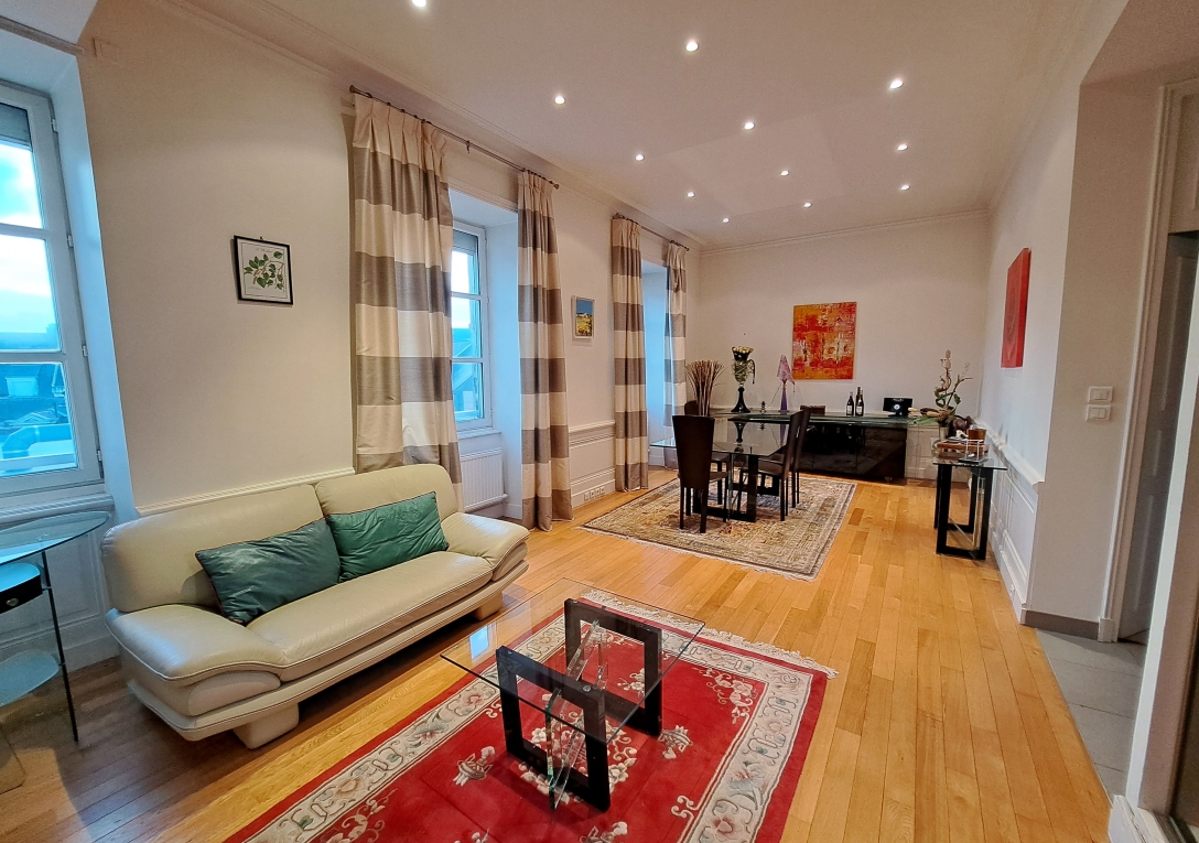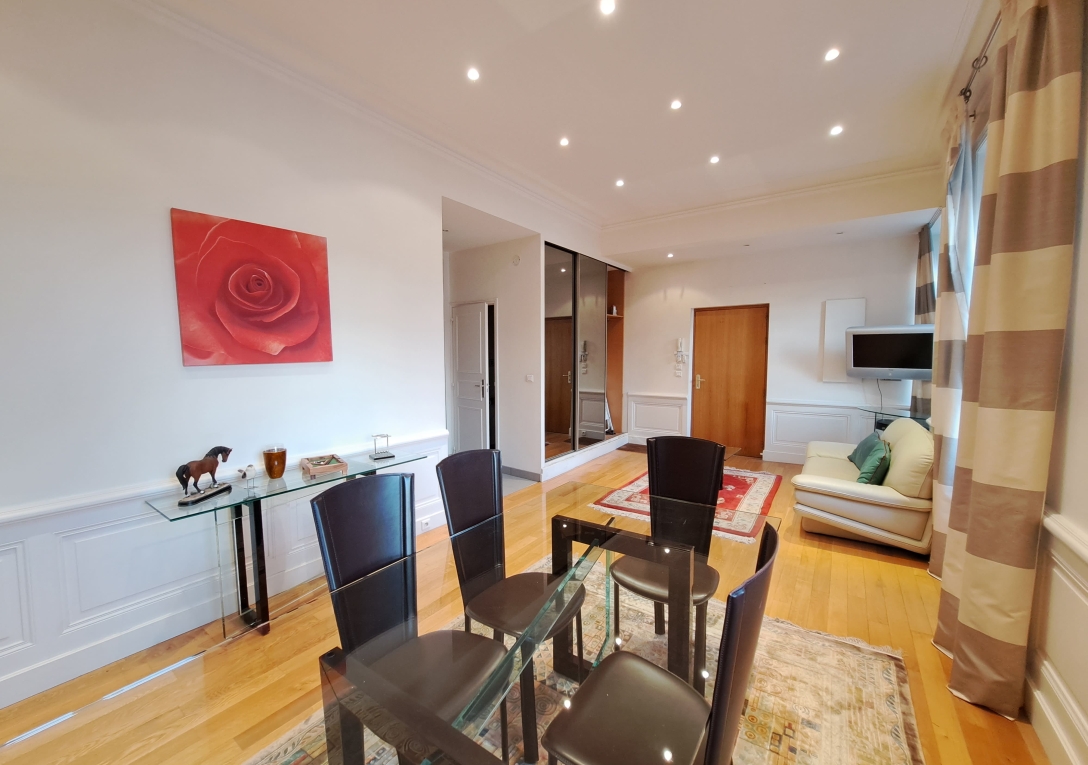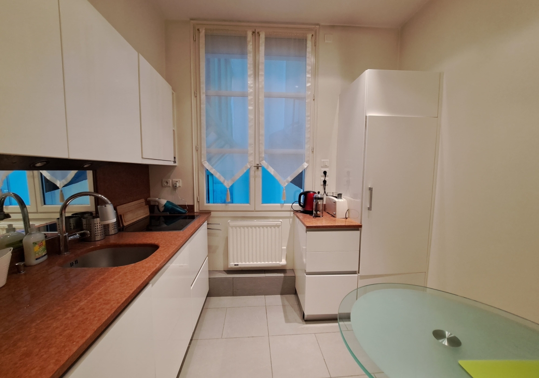 DOBRE / Proche de la place Graslin, appartement T3 meublé, au 3ème étage, donnant sur cour, offrant une pièce de vie sur parquet, une cuisine aménagée et équipée, 2 chambres avec rangements, salle d'eau avec double vasques et douche à l'italienne, WC séparé.