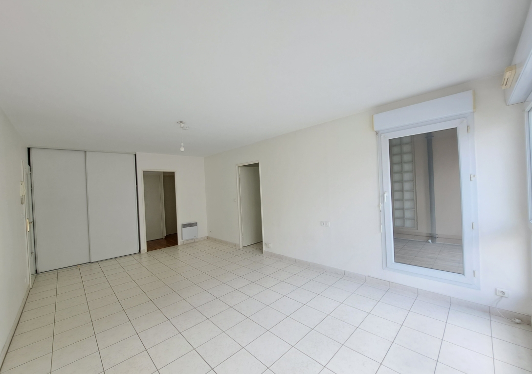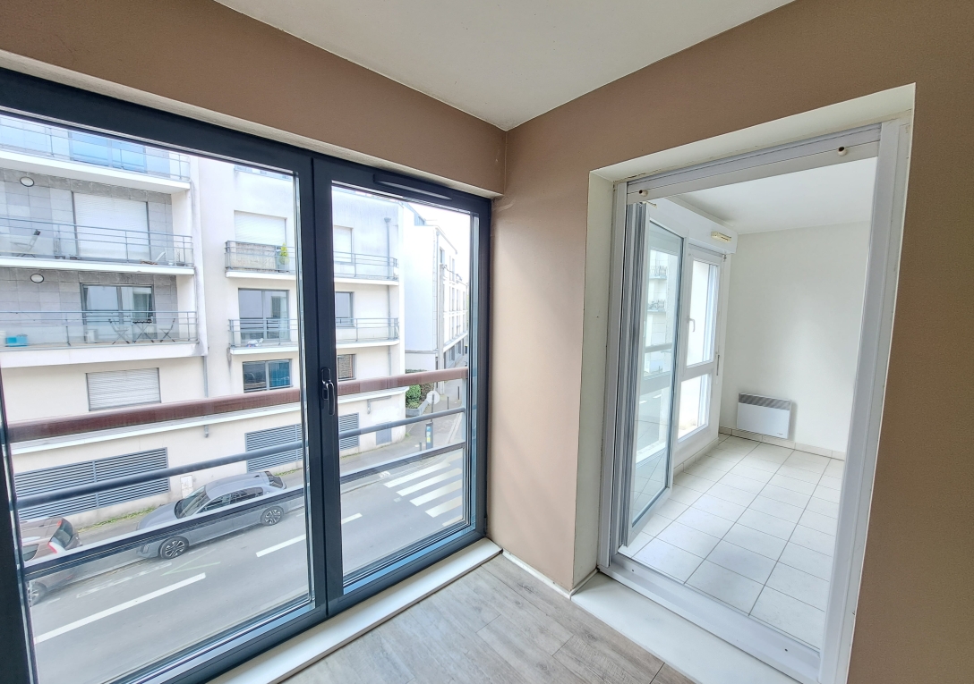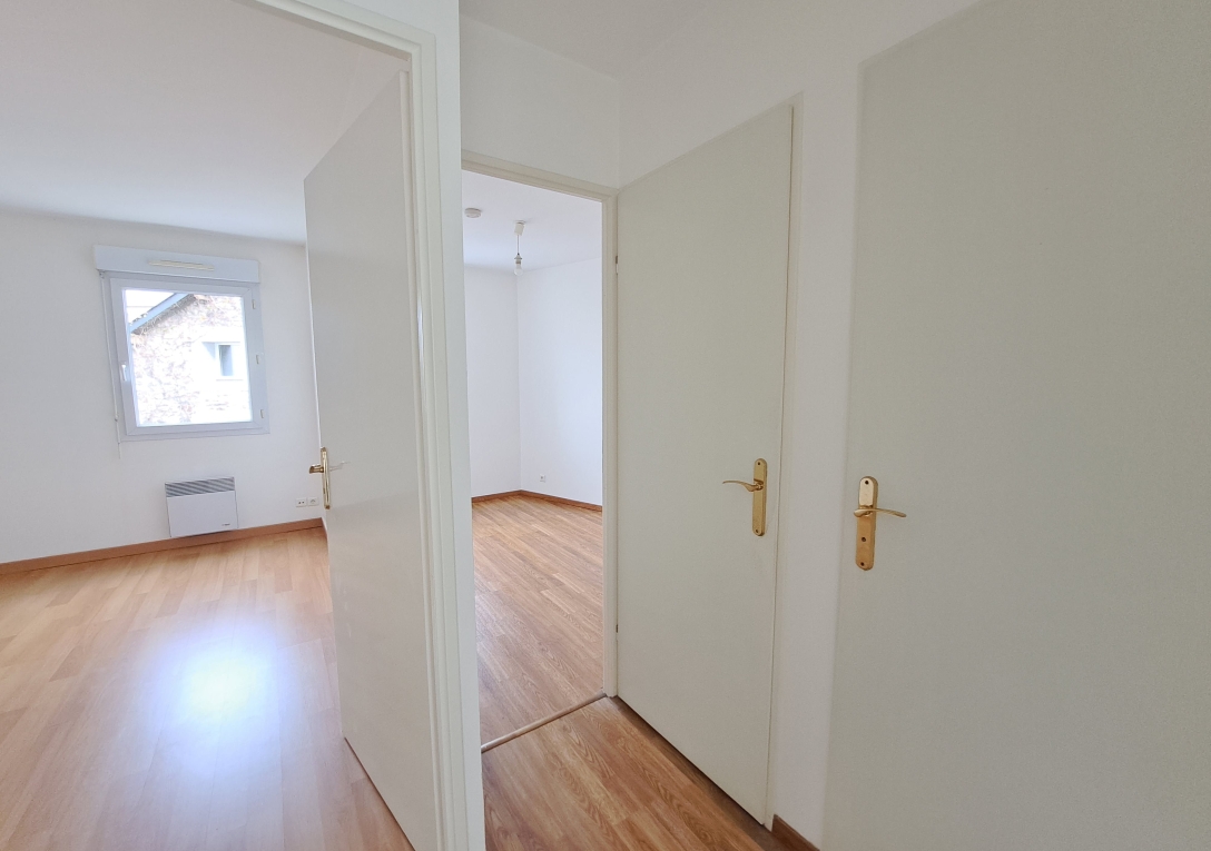 VIARME / Appartement T3 situé en 2ème étage comprenant une entrée avec placard, un séjour avec balcon, une cuisine aménagée, deux chambres et une salle d'eau avec WC.