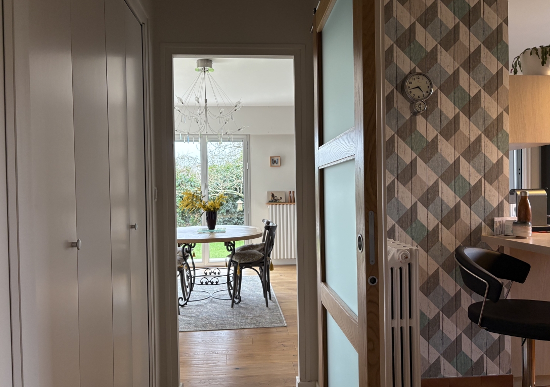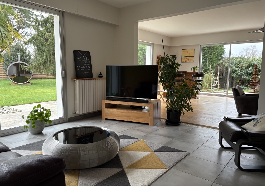 Maison confortable avec de beaux volumes et un chauffage pompe à chaleur à proximité des transports et commerces.