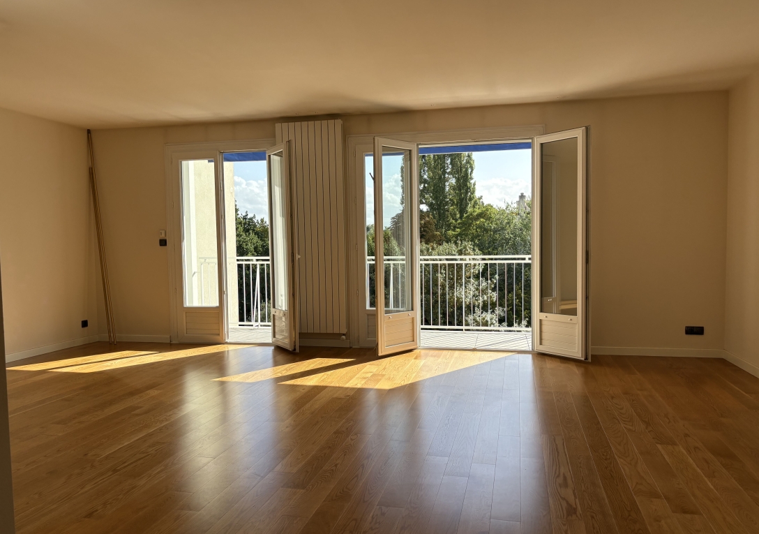 CAMUS / Appartement T3 de 106 m2, en 2ème étage comprenant une entrée desservant un séjour de 36 m2 donnant sur une terrasse orienté sud-ouest sans vis à vis , une cuisine aménagée et équipée, un dégagement avec rangement desservant deux grandes chambres dont une avec salle de bain et dressing, une salle d'eau avec WC, des WC séparés.